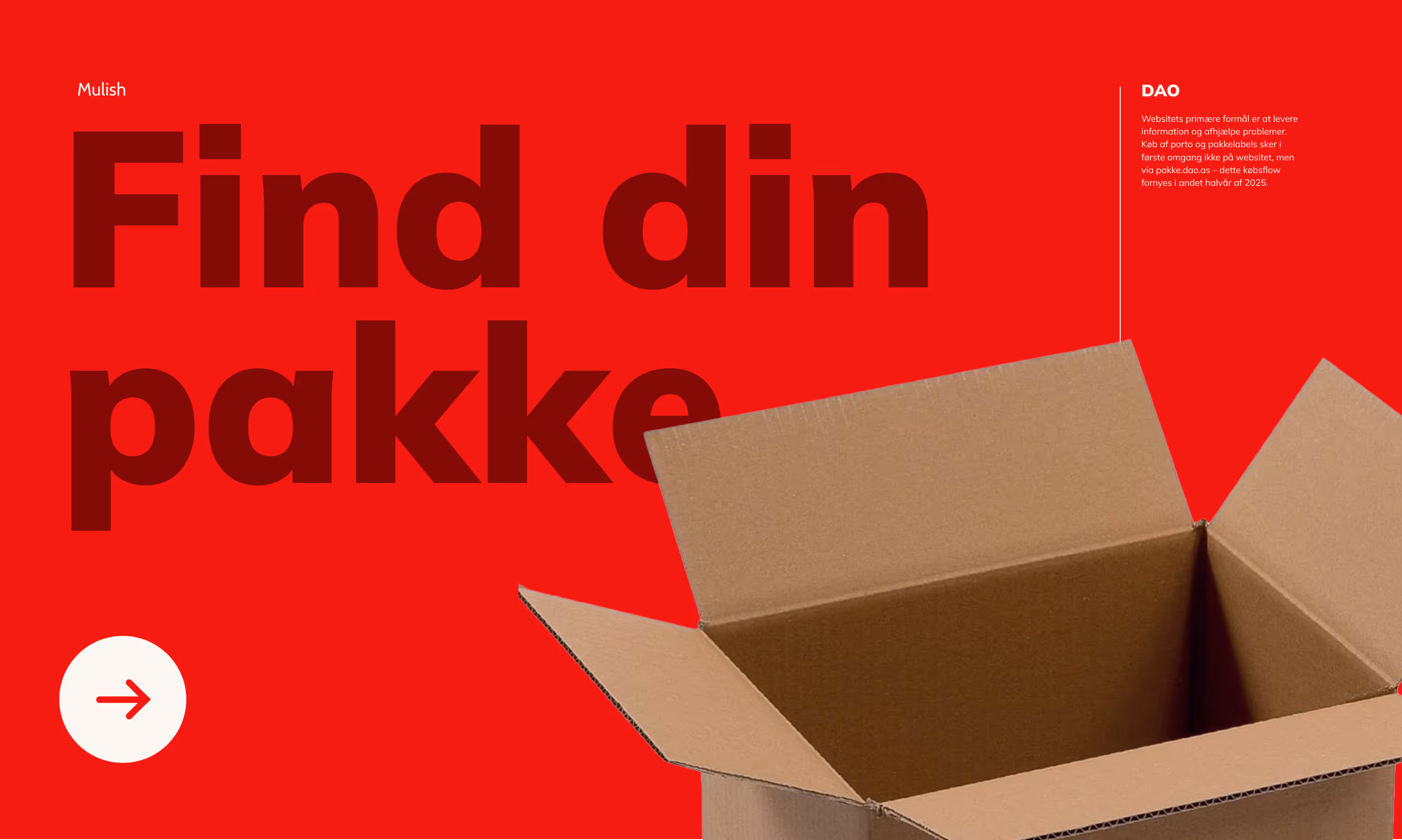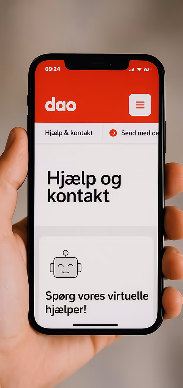 Our first step was creating a straightforward, informative website with an AI assistant to efficiently answers common customer questions. Purchases for postage and labels initially remained external at pakke.dao.as, but was later integrated directly into the main website. Among other things, we introduced a simple toggle switch separating private and business user experiences, which significantly improved the usability of the site for both groups.